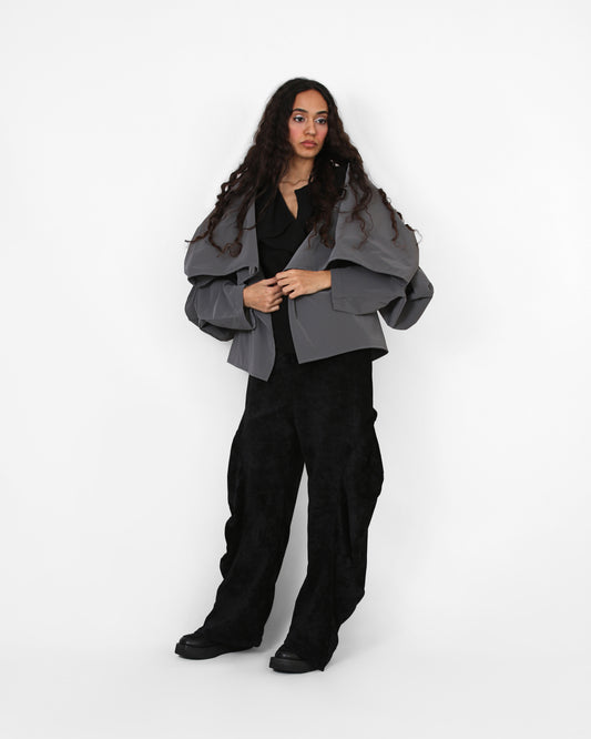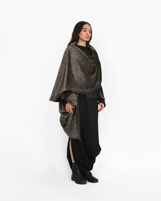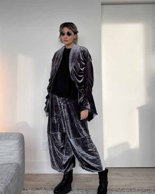 Spiral Drape Coat - Silver Velvet