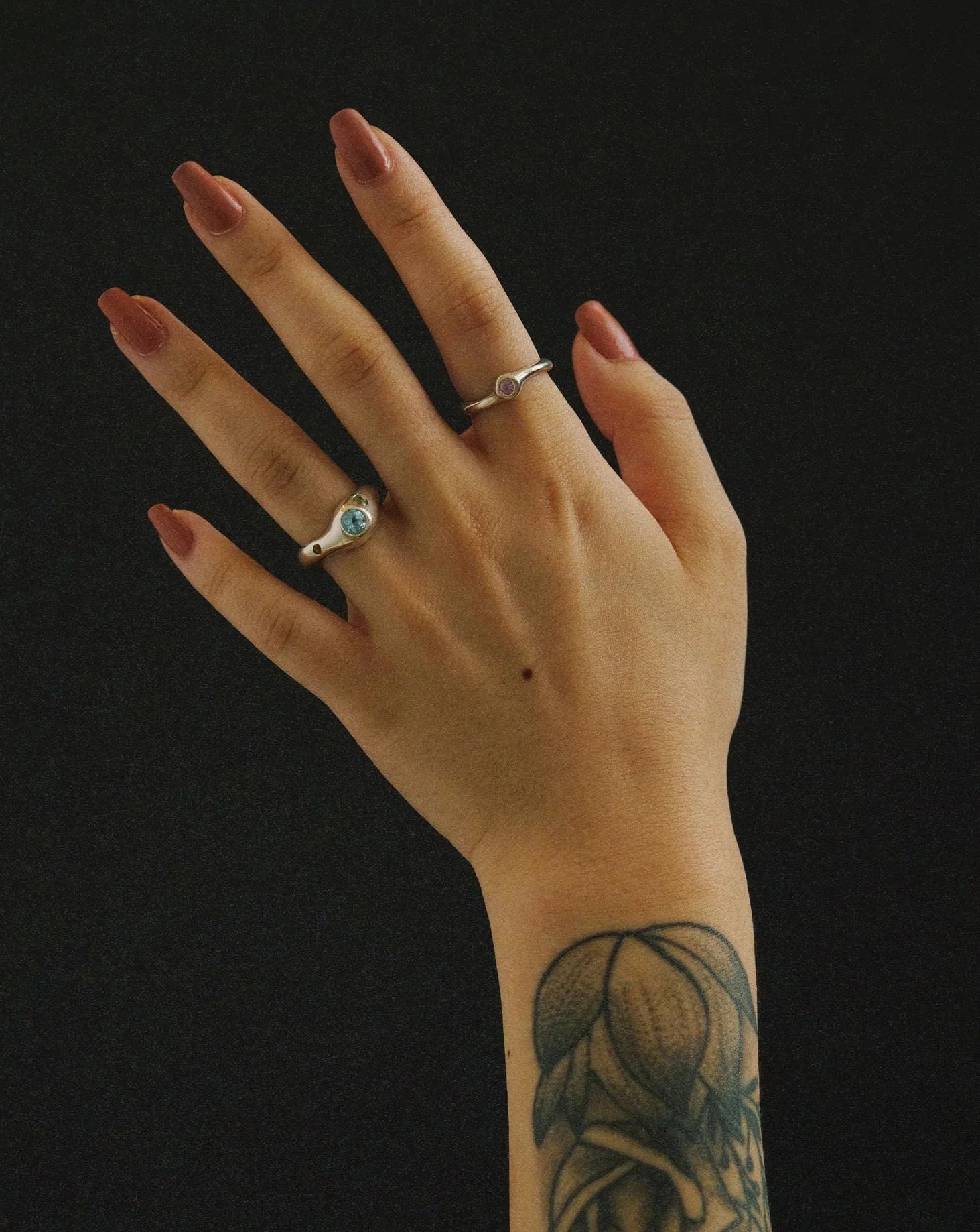 She's cute! The Bae ring is adorned with colourful stones, topaz, green sapphire, and orange sapphire.