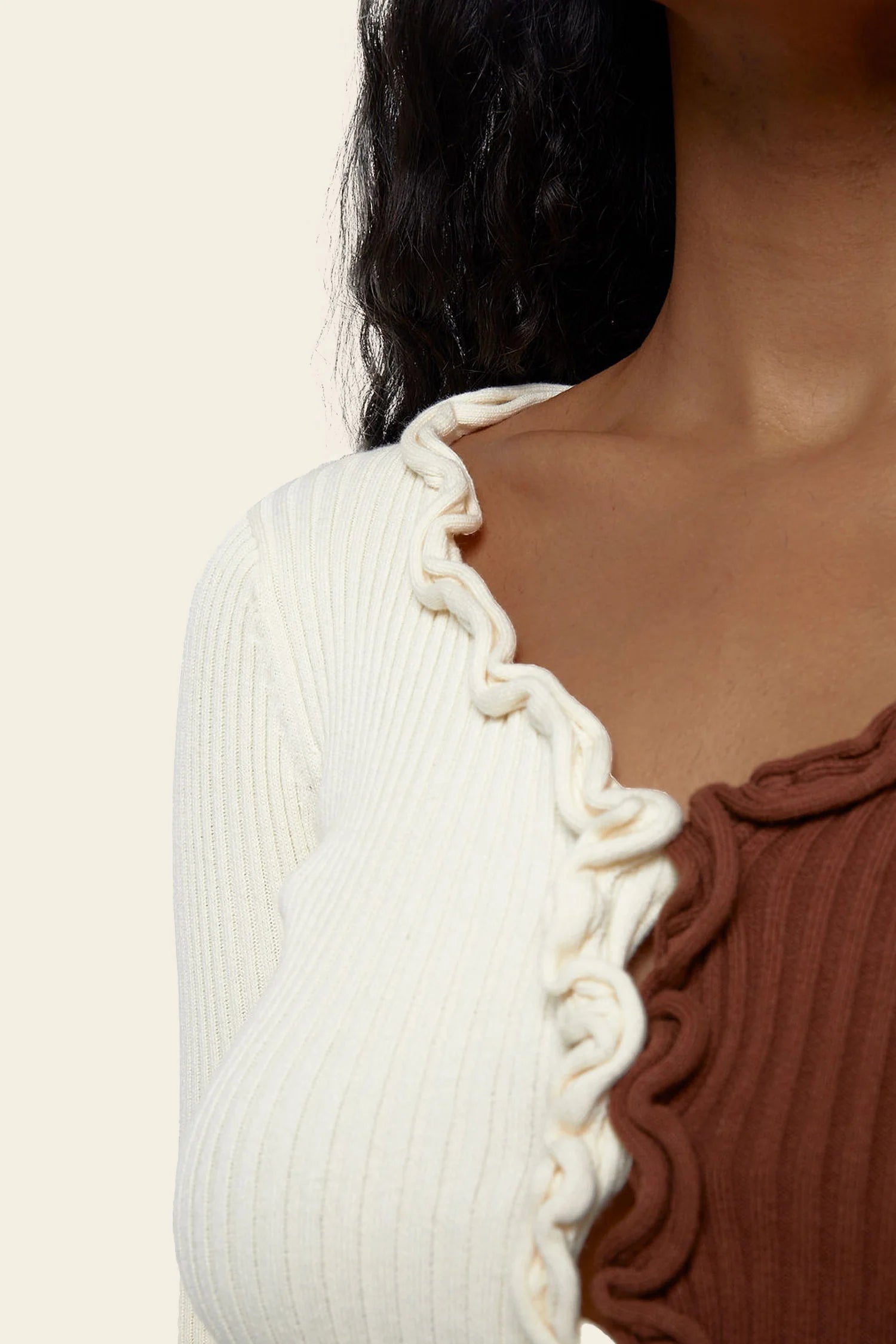 Charlie Ruffle Knit Top – Cafe Au Lait