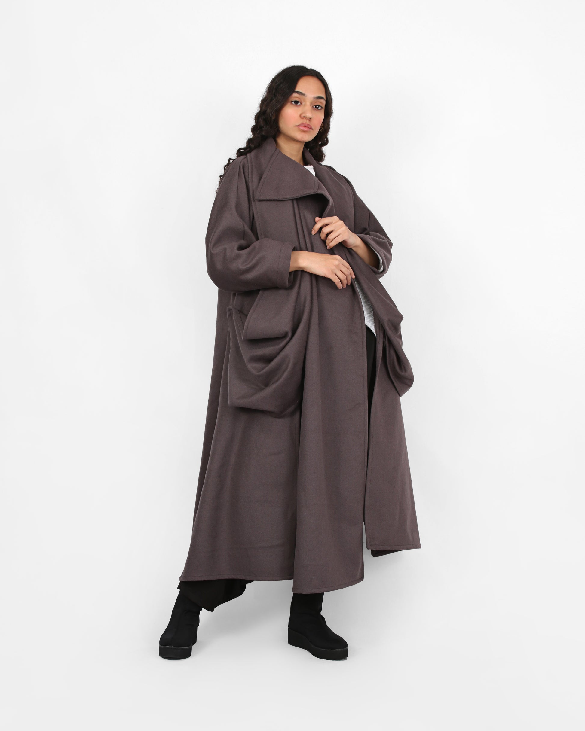 The Draped Harmony Coat is the epitome of luxurious comfort and timeless design. Its free-size silhouette flows effortlessly, combining structure with graceful drapery for a sophisticated yet relaxed look. Featuring voluminous pockets and subtle details, this coat offers versatility for both casual and formal occasions. A true statement piece for every wardrobe, designed to embrace all forms with elegance and ease.
