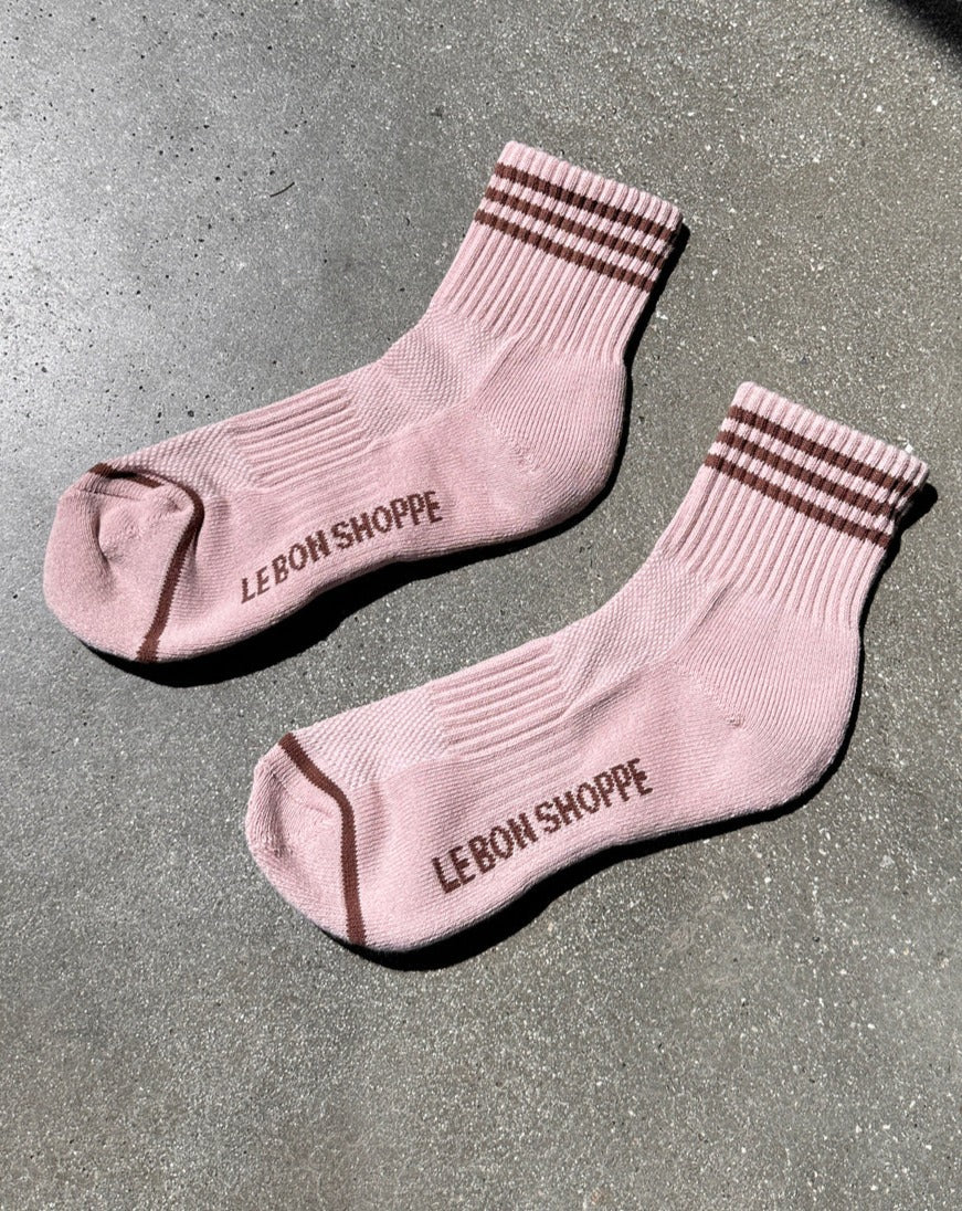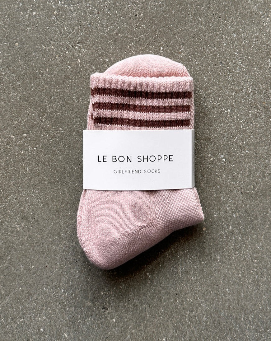 They loved their Boyfriend Socks so much they decided she needed a sister. The Girlfriend Socks are the cool crew version of their original bestseller and classic Boyfriend Socks. These beauties feature a triple contrast stripe at the opening and a shorter classic crew sock length. She is a universally quintessential sock and especially flattering for petite folk.