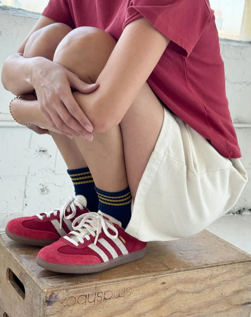 They loved their Boyfriend Socks so much they decided she needed a sister. The Girlfriend Socks are the cool crew version of their original bestseller and classic Boyfriend Socks. These beauties feature a triple contrast stripe at the opening and a shorter classic crew sock length. She is a universally quintessential sock and especially flattering for petite folk.