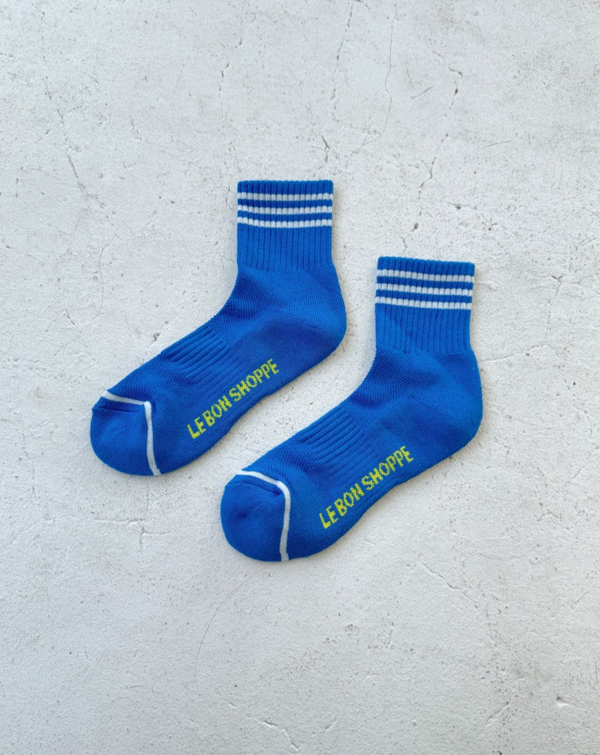 They loved their Boyfriend Socks so much they decided she needed a sister. The Girlfriend Socks are the cool crew version of their original bestseller and classic Boyfriend Socks. These beauties feature a triple contrast stripe at the opening and a shorter classic crew sock length. She is a universally quintessential sock and especially flattering for petite folk.