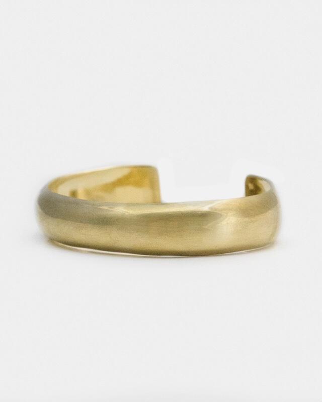 Single domed cuff. Approximately 2 1/2" long and 1 1/2” wide. Polished finish. Available in sterling silver or brass.