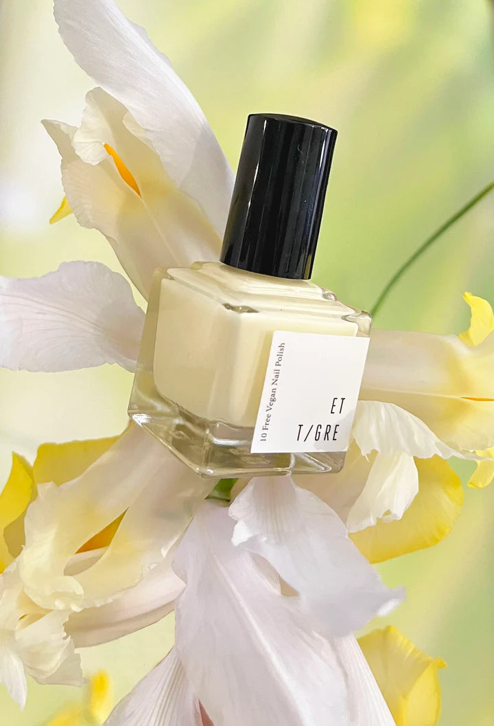 Vegan 10-free nail polish in creamy, buttery yellow.