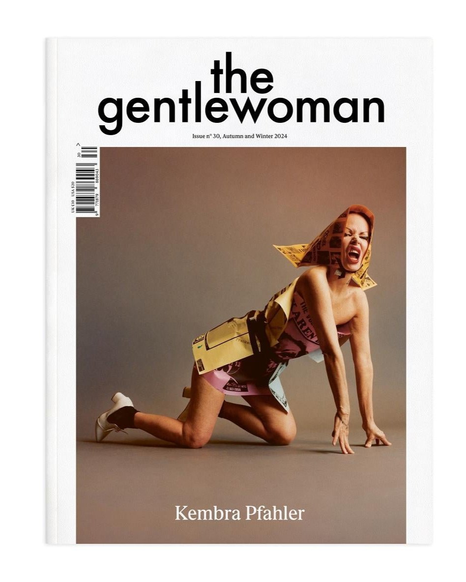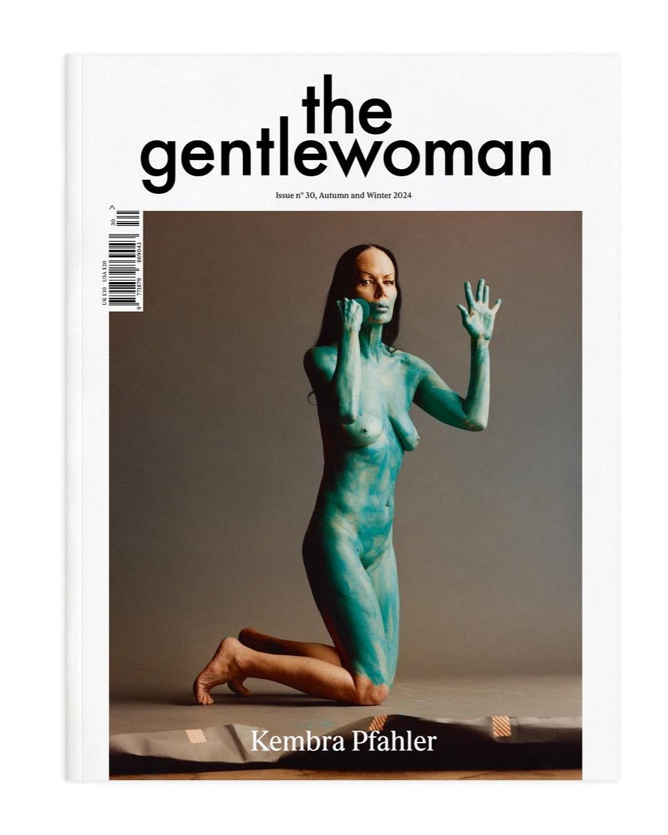 Issue nº 30 of The Gentlewoman is fronted — and how! — by the feminist art icon and theatrical rocker Kembra Pfahler. The linchpin of the New York underground appears in all her glory via a 14-page profile by Cristina Ruiz, with photography by Jamie Hawkesworth and styling by — well — Kembra, whose cheery outlook, “I’m not naked, I’m wearing body paint”, is not shared in all quarters. Hence, two fabulous covers.