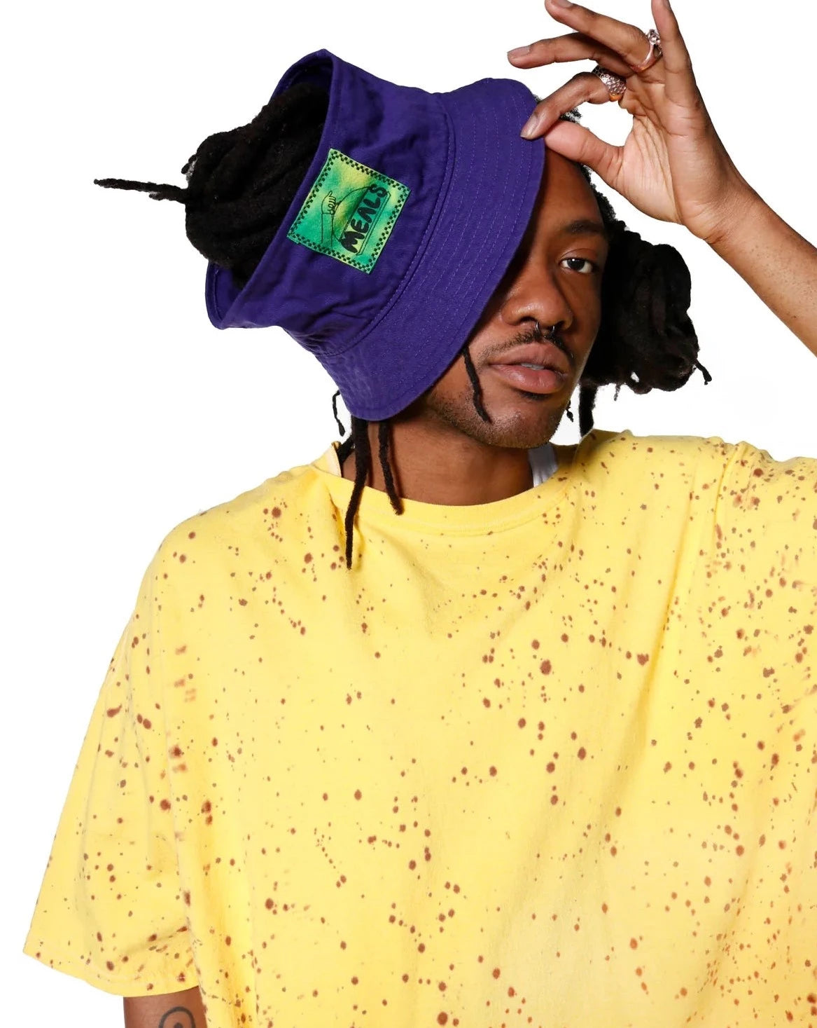 Topless bucket hat! Topless but modest! With a little printed meals patch on the front. Seen on Jenna Ortega in the "The Fallout" !